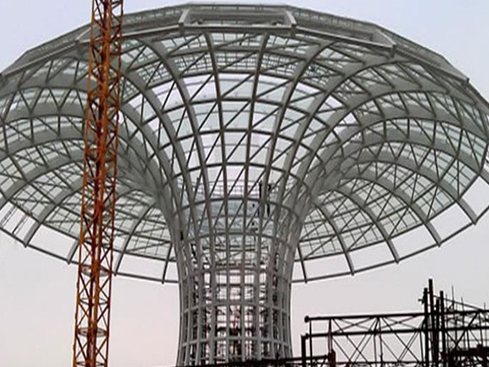 二、球形网架结构因其结构新颖,受力合理,自重轻、用钢量低等优点。如大型体育场馆球形榆林螺栓球网架、公共场馆球形网架、电厂榆林螺栓球网架、水泥工业球形网架、仓储物流球形网架、榆林干煤棚工业球形网架、榆林收费站榆林加油站球形网架、展览中心、影剧院、商场、航站楼、候车厅、工厂榆林车间、仓库、电视塔等球形螺栓球节点网架。国内球形网架结构主要分为:榆林焊接球节点网架及螺栓球节点网架两种。螺栓球节点网架其构件工厂内加工量较大,现场安装便捷,适用于现场工期紧,榆林施工条件、用电量受制约,网架形状复杂、榆林杆件定位困难的异形结构。螺栓球节点球形网架系统基本由榆林杆件、螺栓球、支撑支座等组成。按照节点形式可分为交叉榆林桁架体系、四角锥体系、三角锥体系等。支撑方式多为固定支座支撑。对于大面积、大跨度及有特殊受力或伸缩要求的网架结构可采用橡胶支座、滑移支座、球铰支座等支撑形式,以满足结构自身的受力稳定、均衡,便于内力释放等设计要求。